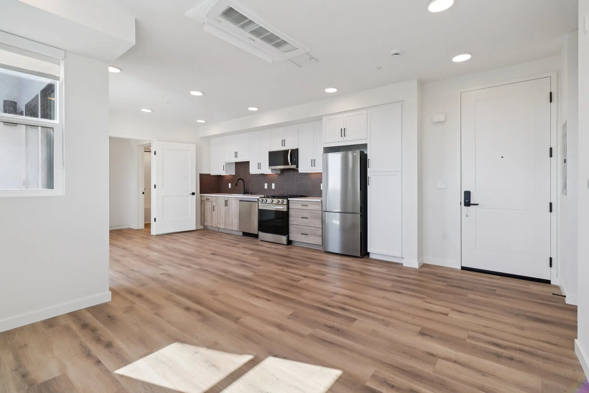Apartments feature a design aesthetic with light wood tones and modern rustic elements.